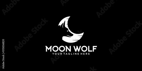 © reza, Fototapeta premium wolf head and moon night logo design silhouette