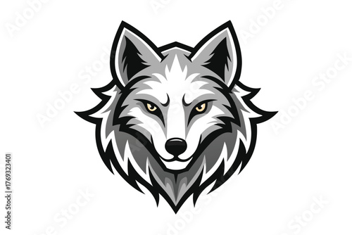 © Brojendra, Naklejka premium wolf head logo vector in white background