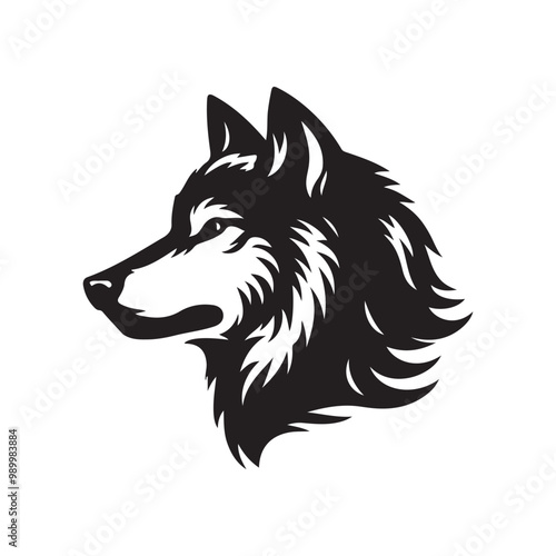© Never Look Back, Naklejka premium wolf head silhouette, Stylized silhouette icons of a wolf face on a white background, depicted in vector format
