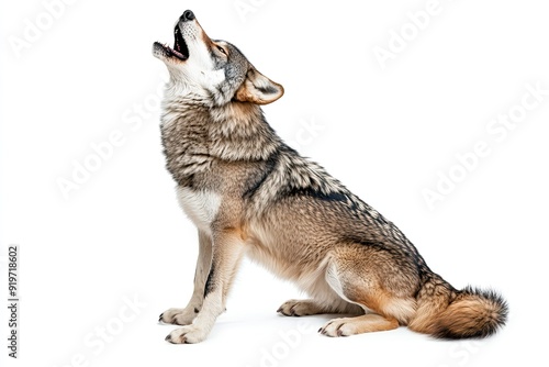 © Barra Fire, Obraz premium Wolf howling isolated on a white background