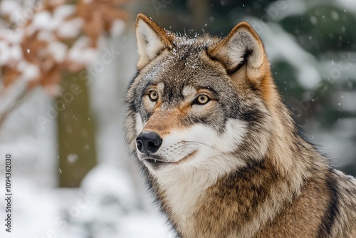 © ILIUSIA, Obraz premium Wolf in a snowy forest during winter.