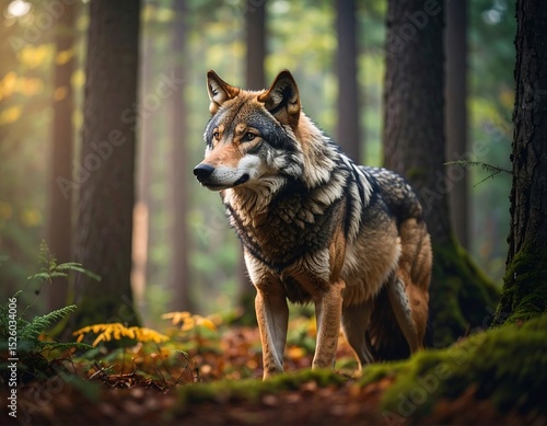 © Aku, Fototapeta premium Wolf in autumn forest (1)