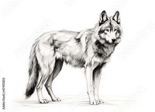 Fototapeta premium Wolf in Black and White Graphic Isolated on White Background