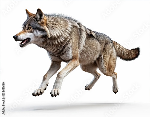 Fototapeta premium Wolf in dynamic pose on isolated white background.