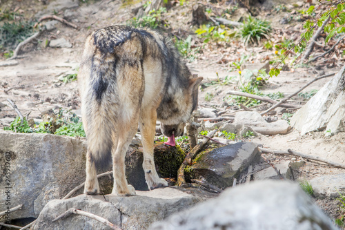 Obraz premium wolf in forest drinking water