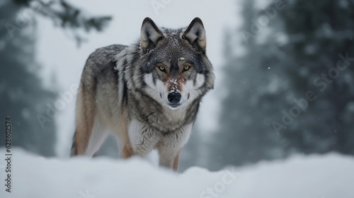 Fototapeta premium Wolf in the snow. Generative AI.