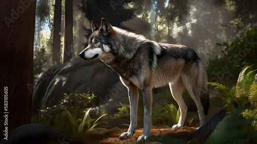 © Matt, Fototapeta premium wolf in the woods generative ai