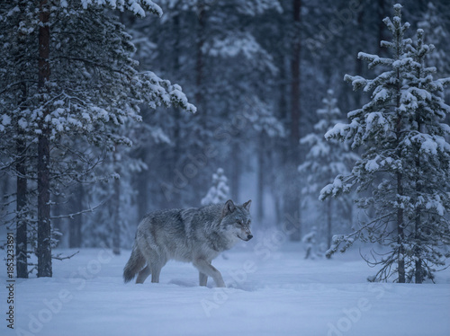 © designbysoumo, Fototapeta premium wolf in winter forest