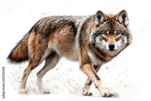 © Space Priest, Fototapeta premium Wolf is walking through the sand, looking at the camera