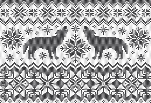 Naklejka premium Wolf jacquard knitted pattern for ugly sweater design. Vector illustration.
