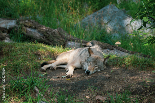 Naklejka premium Wolf napping in the forest