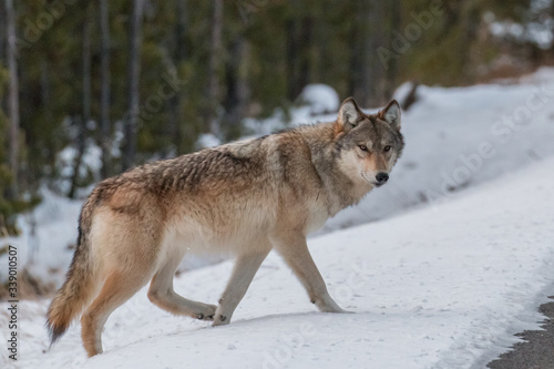 © mtnmichelle, Obraz premium Wolf near the road