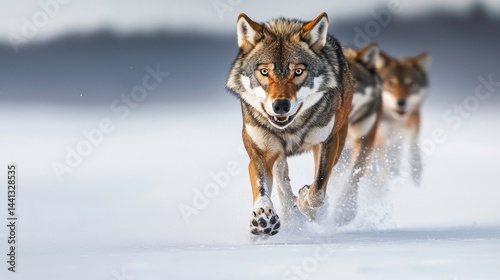© นิศรา อ่วมเกิด, Naklejka premium Wolf Pack Running in Winter Snow