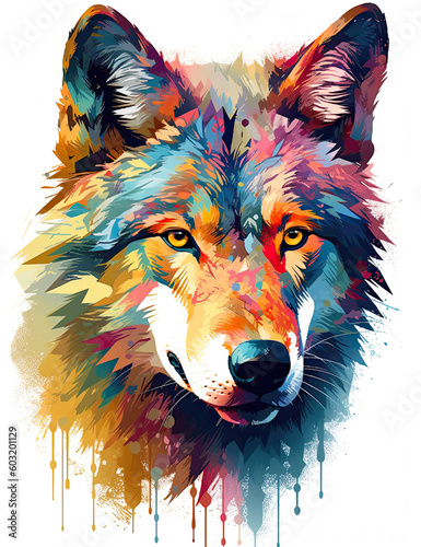 Fototapeta premium Wolf Painting, Neo Impressionism, Wall Art, Wildlife, Animals. Generative AI