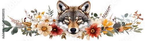 © Saiyla, Obraz premium Wolf Portrait Floral Border