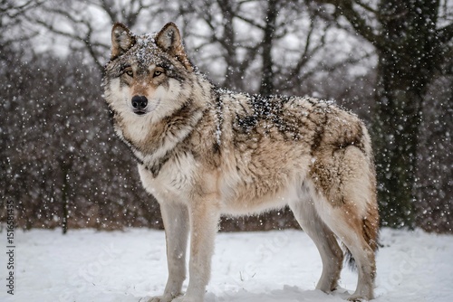 © barata, Naklejka premium Wolf portrait in falling snow conditions