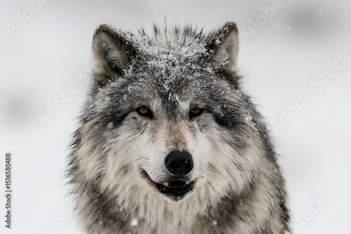 © barata, Fototapeta premium Wolf portrait in winter snowy landscape