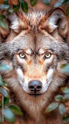 © Abadi, Fototapeta premium Wolf Portrait, Leaves, Nature