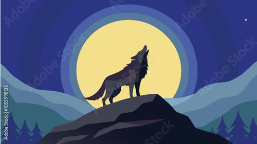 © Tamalchandradebnath, Fototapeta premium Wolf Roaring with Full Moon Background Tribal Style Vector