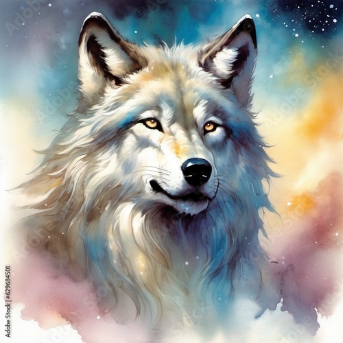Naklejka premium wolf’s head with a colorful background,generative Ai.