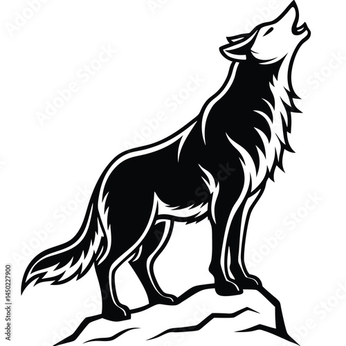 © Prodeep, Obraz premium "Wolf Silhouette Vector Collection Featuring Howling, Tribal, and Wilderness Scenes for Logos, Tattoos, and Outdoor Art"