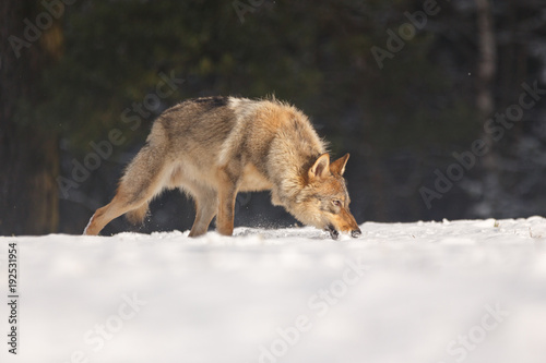 © Nadine Haase, Obraz premium Wolf spielt im Schnee