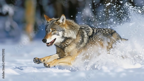 © Emilia, Obraz premium Wolf sprinting across the cold snow