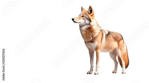 Fototapeta premium Wolf standing gracefully in an isolated white background highlighting its...