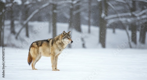 © St Mmh, Obraz premium Wolf Standing in Snowy Forest During Winter