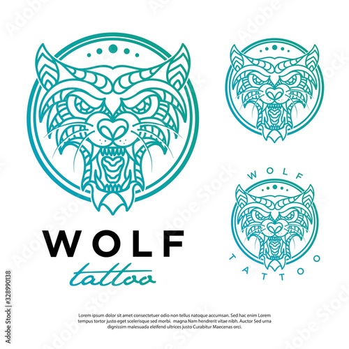 © Voxicord, Fototapeta premium wolf vector logo with a line art tattoo style