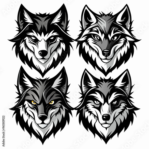 © Abdul, Fototapeta premium Wolf Vector Poses Stickers and Wolf Head Logo