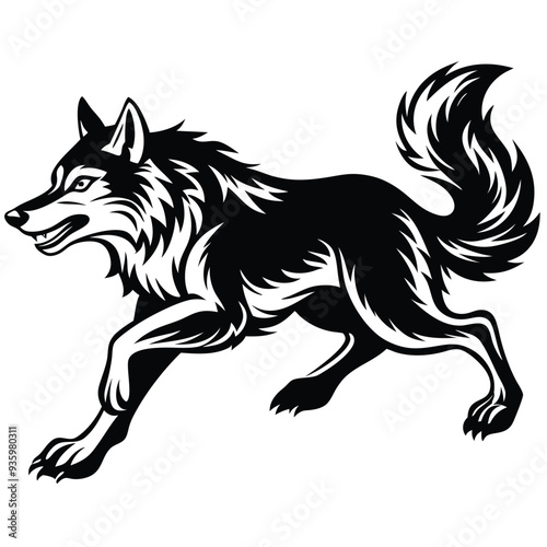 © Tarek, Fototapeta premium Wolf Vector Silhouette design png on white background, Animal Vector