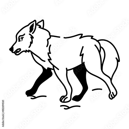 Obraz premium Wolf walking icon in doodle style