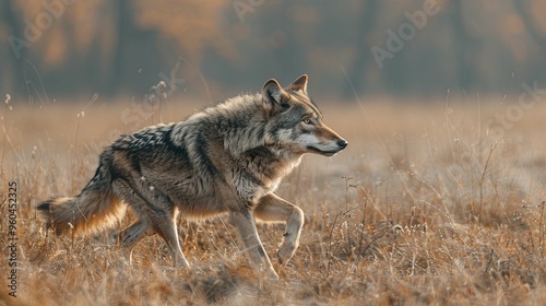 © Arieswanto, Fototapeta premium Wolf Walking Through Tall Grass in Autumn