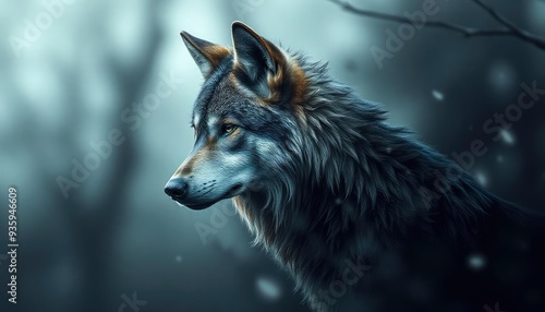 © Dzikrul Husnani, Naklejka premium Wolf wallpaper with decay effect, ai