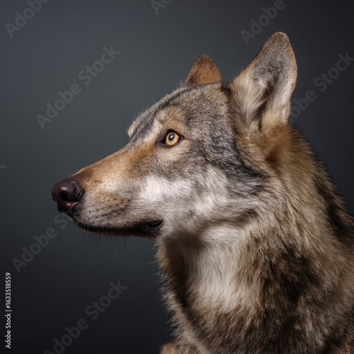 Fototapeta premium Wolf with Head Tilted Studio Lighting