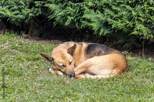 © Tminaz, Naklejka premium Wolfhound dog sleeping in the grass