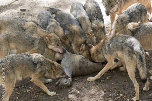 © Xaver Klaussner, Naklejka premium Wolfrudel mit Beute