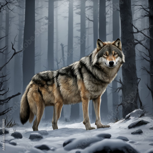 © phatcharaporn, Obraz premium wolves in their natural