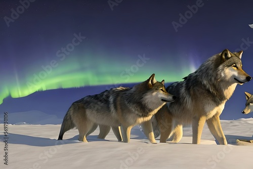 © zwbookworm, Naklejka premium Wolves walking over snow in the winter.