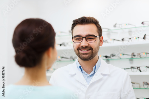 © Syda Productions, Obraz premium woman and optician in glasses at optics store