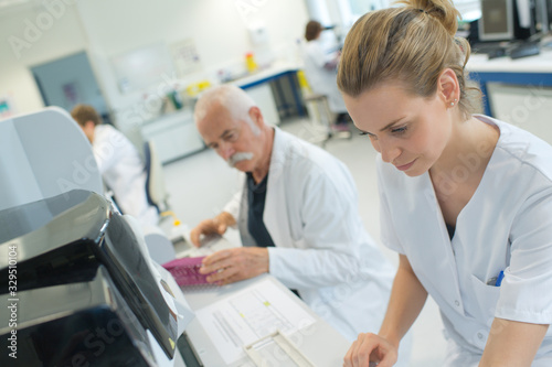 Obraz premium woman and senior inside the medical laboratory