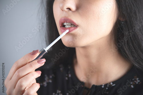 © Aghavni, Fototapeta premium woman Apply lipstick to lips