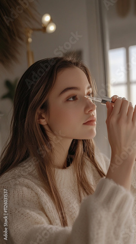 © Cozy Art, Obraz premium Woman applying oil to face with dropper