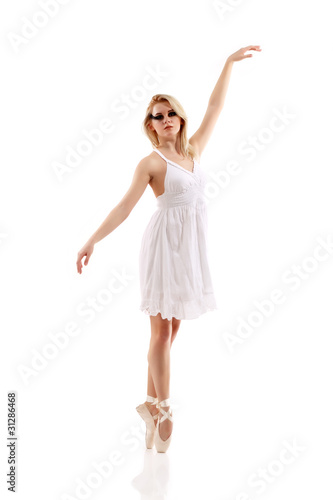 © Khorzhevska, Naklejka premium woman ballet dancer isolated on white