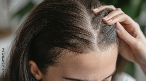 © Ferman Bagus Istuhri, Fototapeta premium Woman Checking Hair Loss