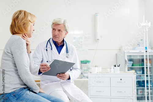 Fototapeta premium Woman complaining on her throat to her doctor