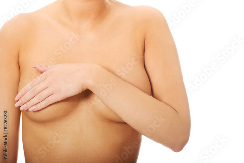 Fototapeta premium Woman covering her breast.