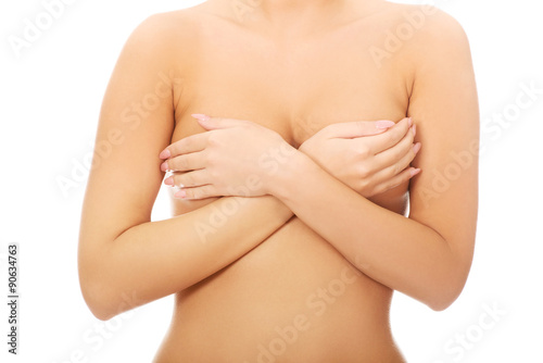 Fototapeta premium Woman covering her breast.