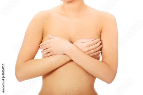 Fototapeta premium Woman covering her breast.